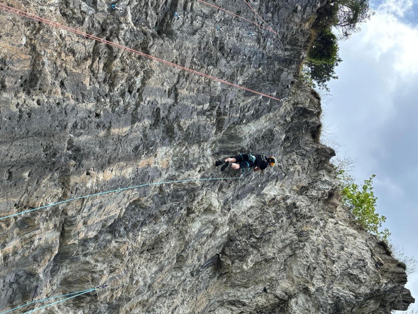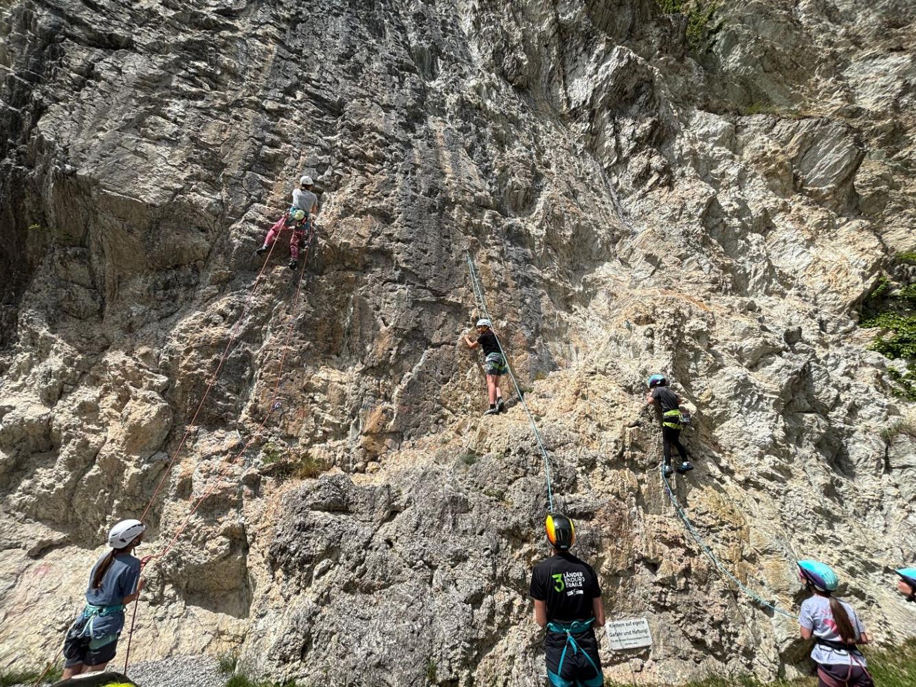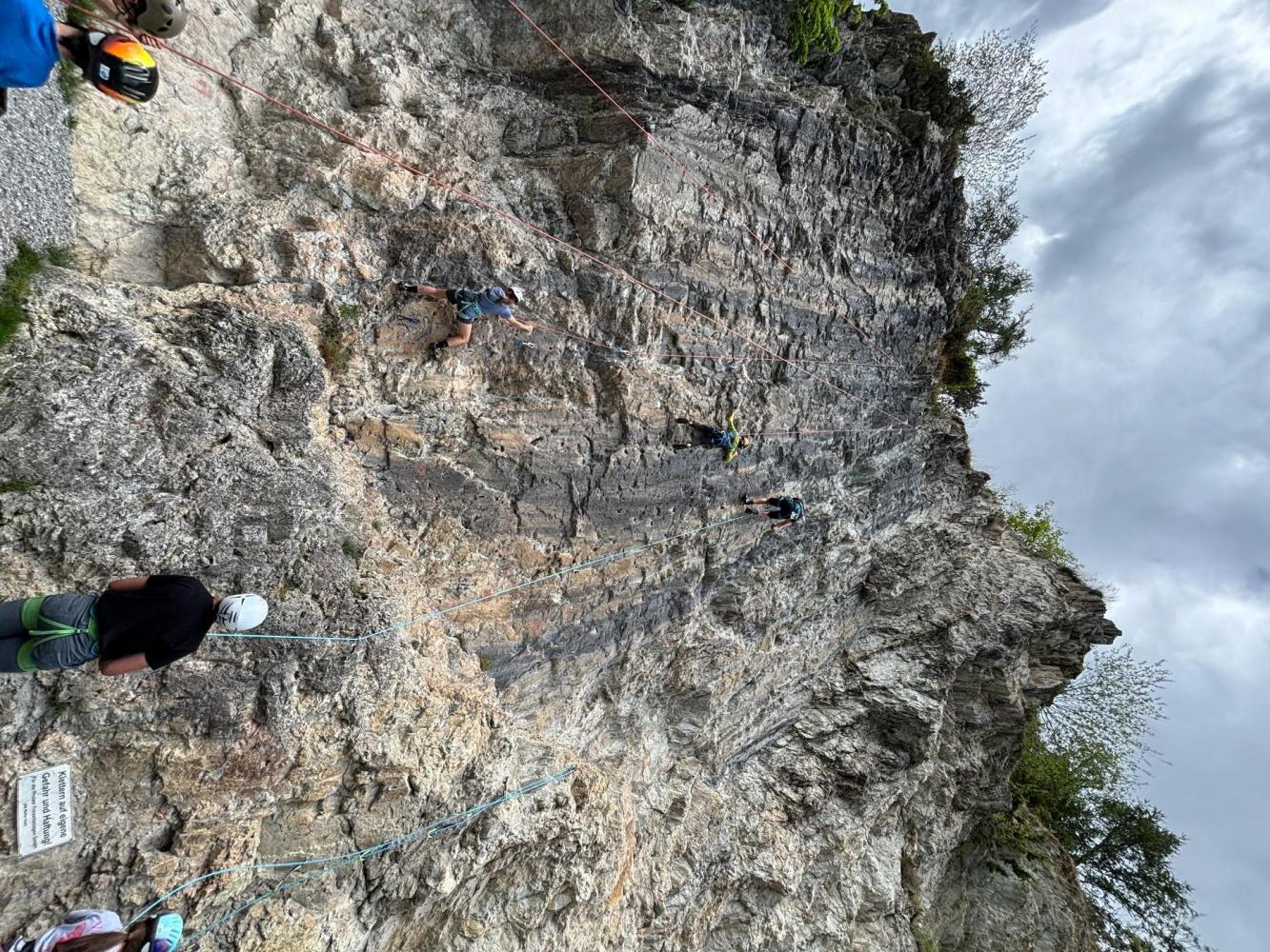 In der „Top-Rope“-Variante durften sie die Routen MC Tirol (5b), Happy Sims (4c), Exit (5b) und Stone Line (5a) erklimmen. Fortgeschrittene Schüler*innen hatten zudem die Möglichkeit, die Routen Exit (5b) und Stone Line (5a) im Vorstieg zu bewältigen.