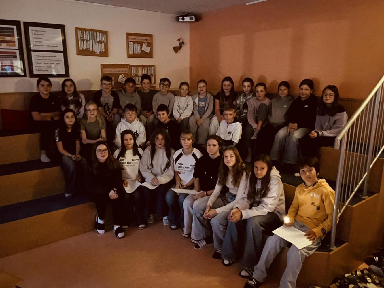 Die Schülerinnen und Schüler der ersten Klassen wurden mit selbstgeschriebenen Gruselgeschichten auf die dunkle Jahreszeit eingestimmt.
