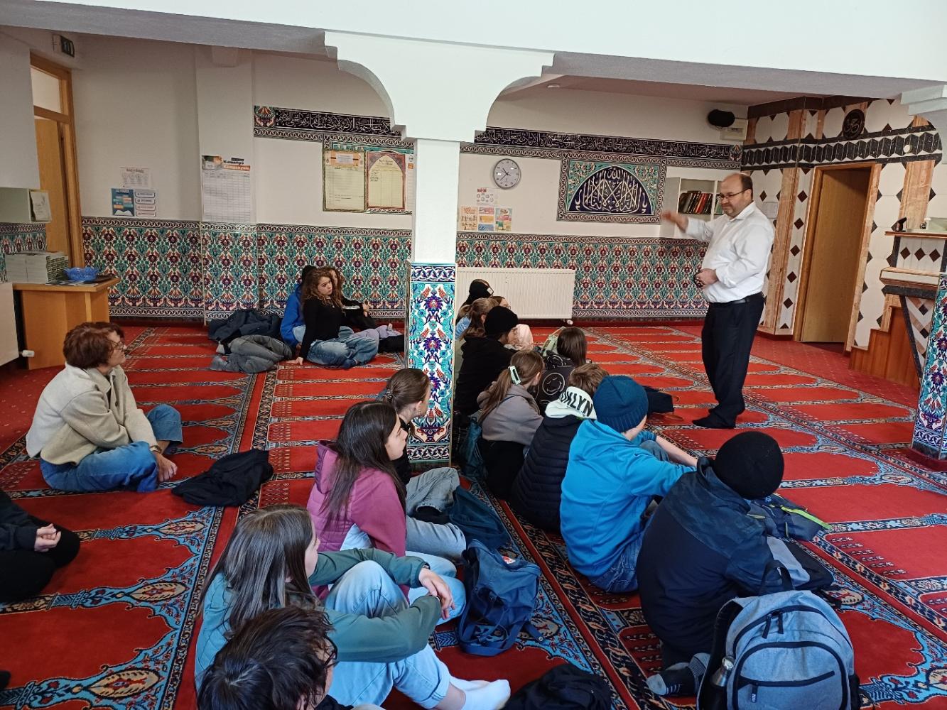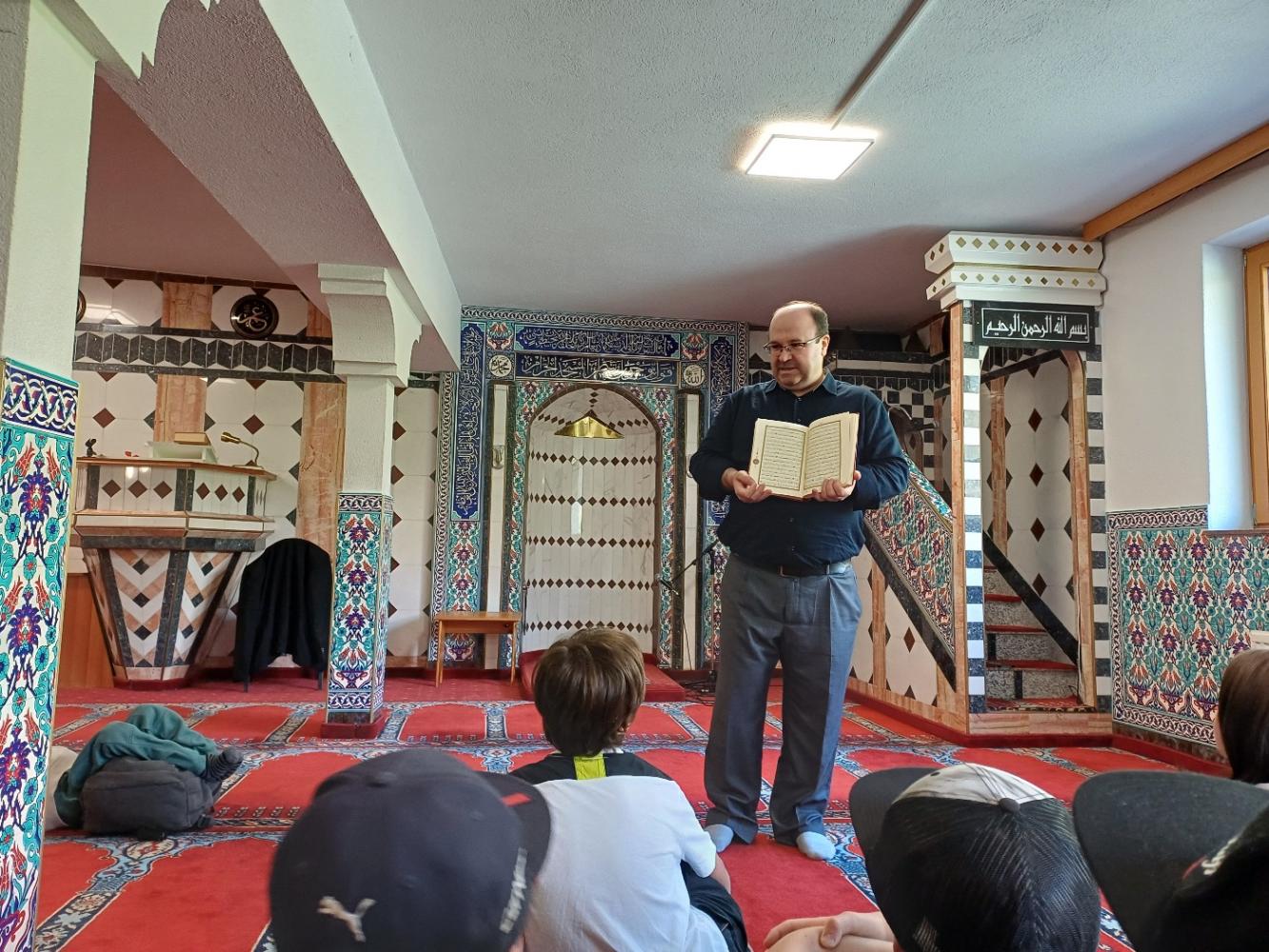 Schon beim Betreten der Moschee waren wir beeindruckt von der schönen und liebevoll gestalteten Ausstattung. Herr Yigiter erklärte uns geduldig die wichtigsten Grundsätze des Islam, das Gebet mit den Waschungen, den Fastenmonat Ramadan und vieles mehr. Wir durften auch Fragen stellen und erfuhren viel Neues und Interessantes über den Islam.